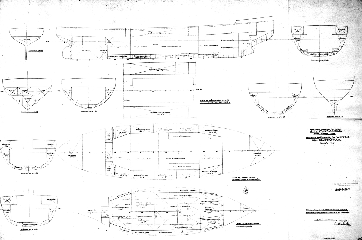 Ritning för stadsisbrytare för Öresund. Juli 1945. Gävle Varv.
