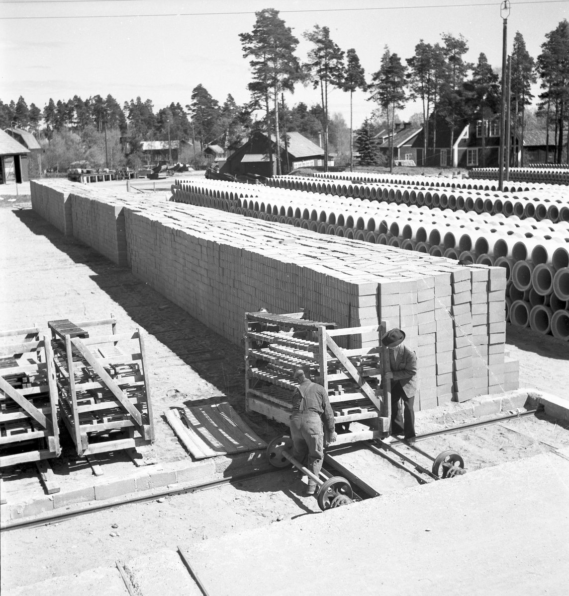Uppställningsplats för Cementrör. Skånska Cement AB, Valbo. 27 maj 1946.