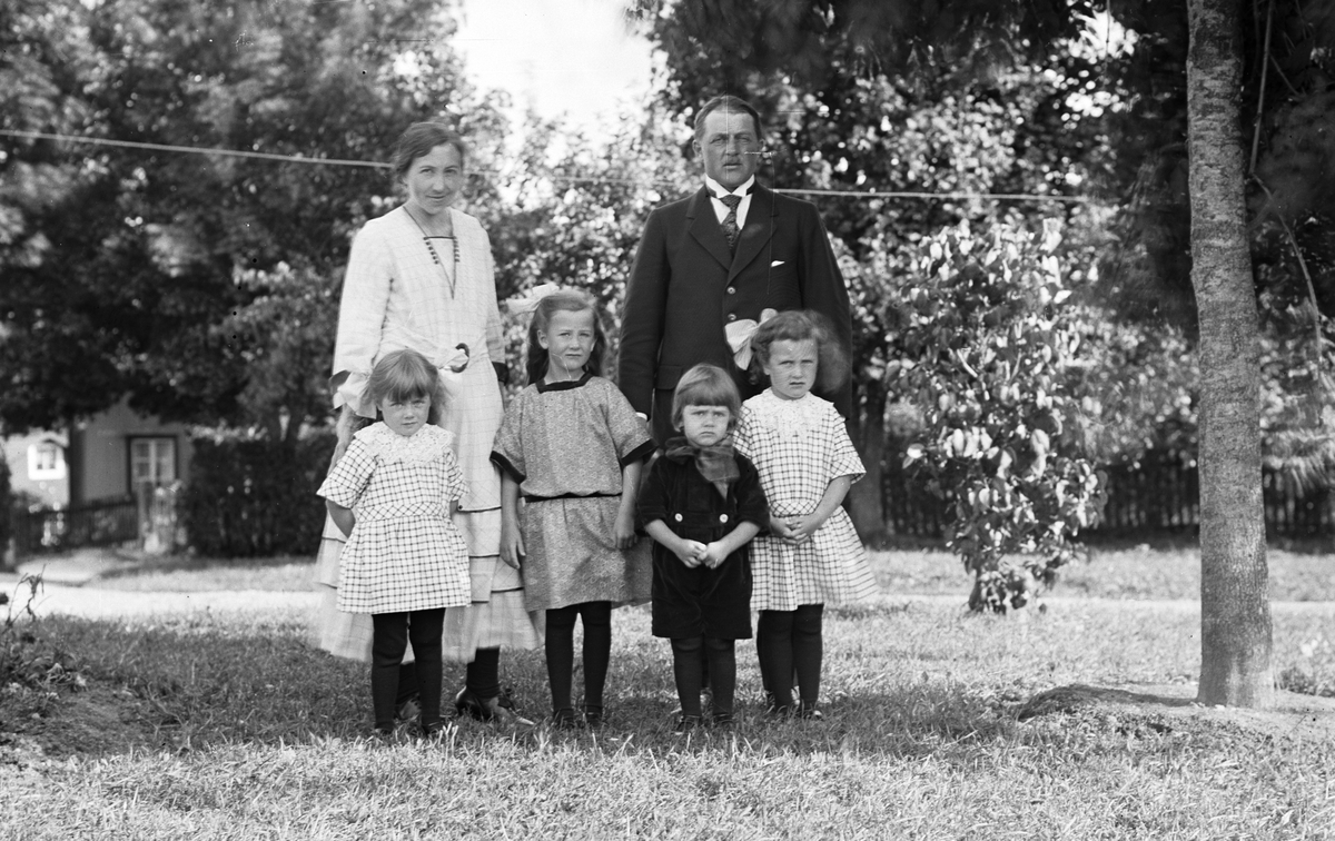 Familjen Nilssons på "Lars-Lars", Nyhyttan 3. Gunnar och Maria med barnen Elisabet, Siri, Arne och Inga