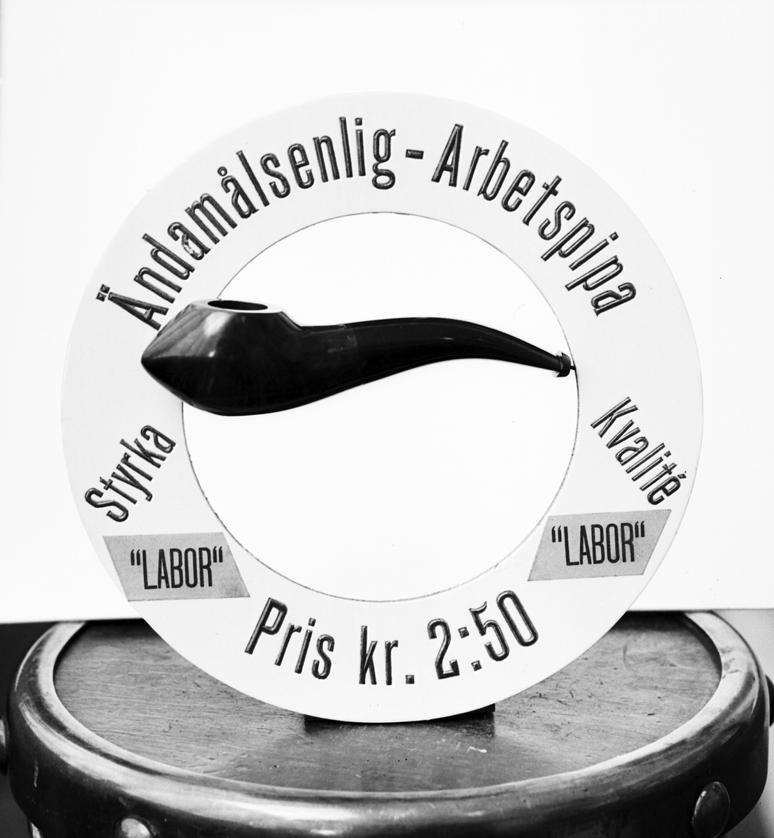 Bromander. "Ändamålsenlig-Arbetspipa. Styrka. Kvalité. "Labor". Pris kr. 2:50"