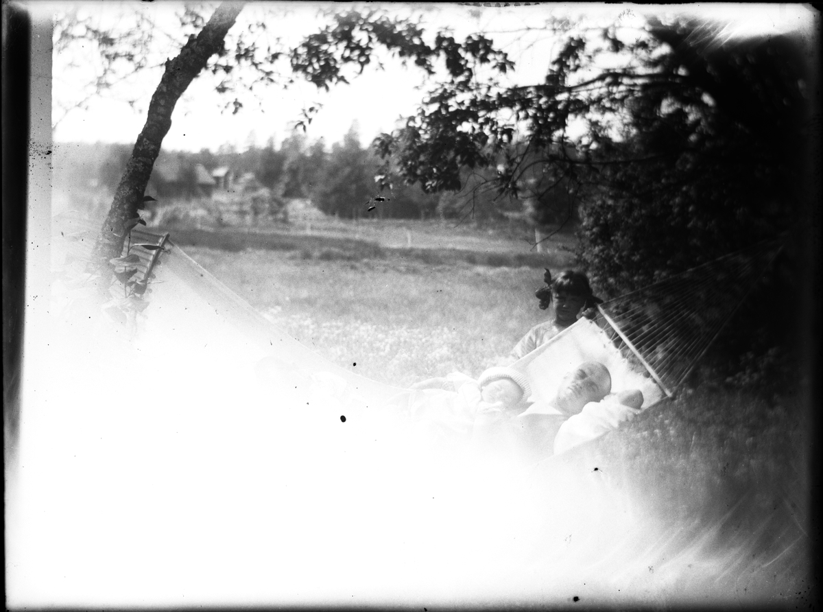 David Brundin vilar i hängmattan med förmodligen sin son Sören.