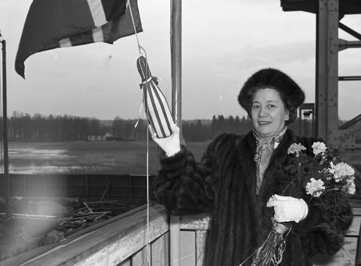 Stapelavlöpning. Den 19 februari 1949. Norskt fartyg. Gävle Varv anlades 1873. Efter en konkurs 1921 bildades Gefle Varfvs och Verkstads Nya AB, som bland annat tillverkade oljecisterner och utrustningar till pappersmassefabriker. På 1940-talet återupptogs skeppsbyggeriet.
