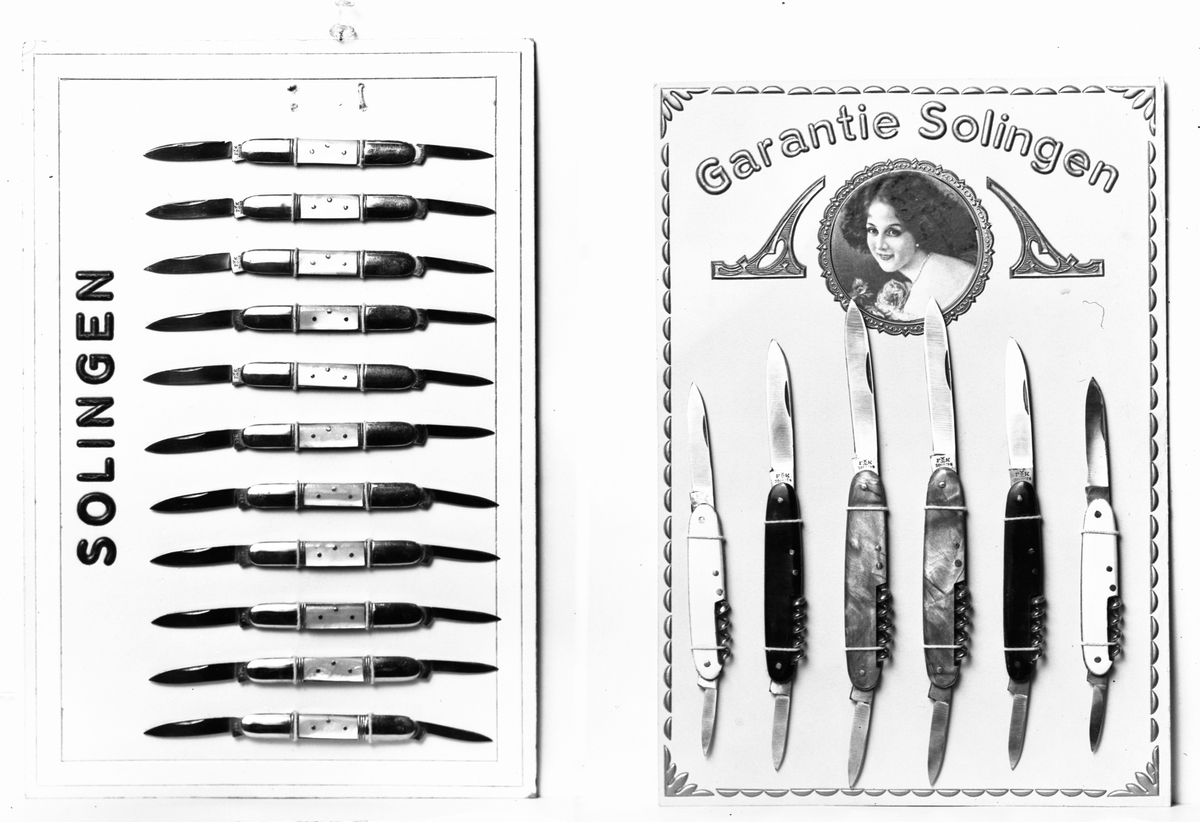 Bröderna Sandblom. "Solingen fickknivar". 1930-års adresskalender Norra Centralgatan 17, 1945-års telefonkatalog Norra Skeppsbron 2