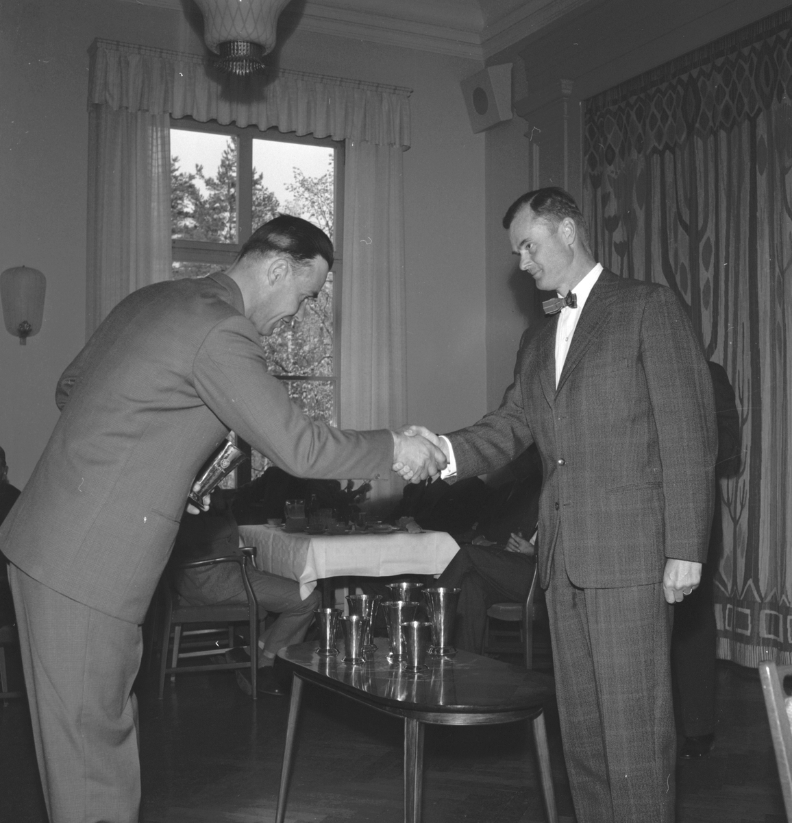 Titel: Korsnäs Personaltidning. Sammankomst i Föreningshuset med uppvaktning. Korsnäs AB. År 1961