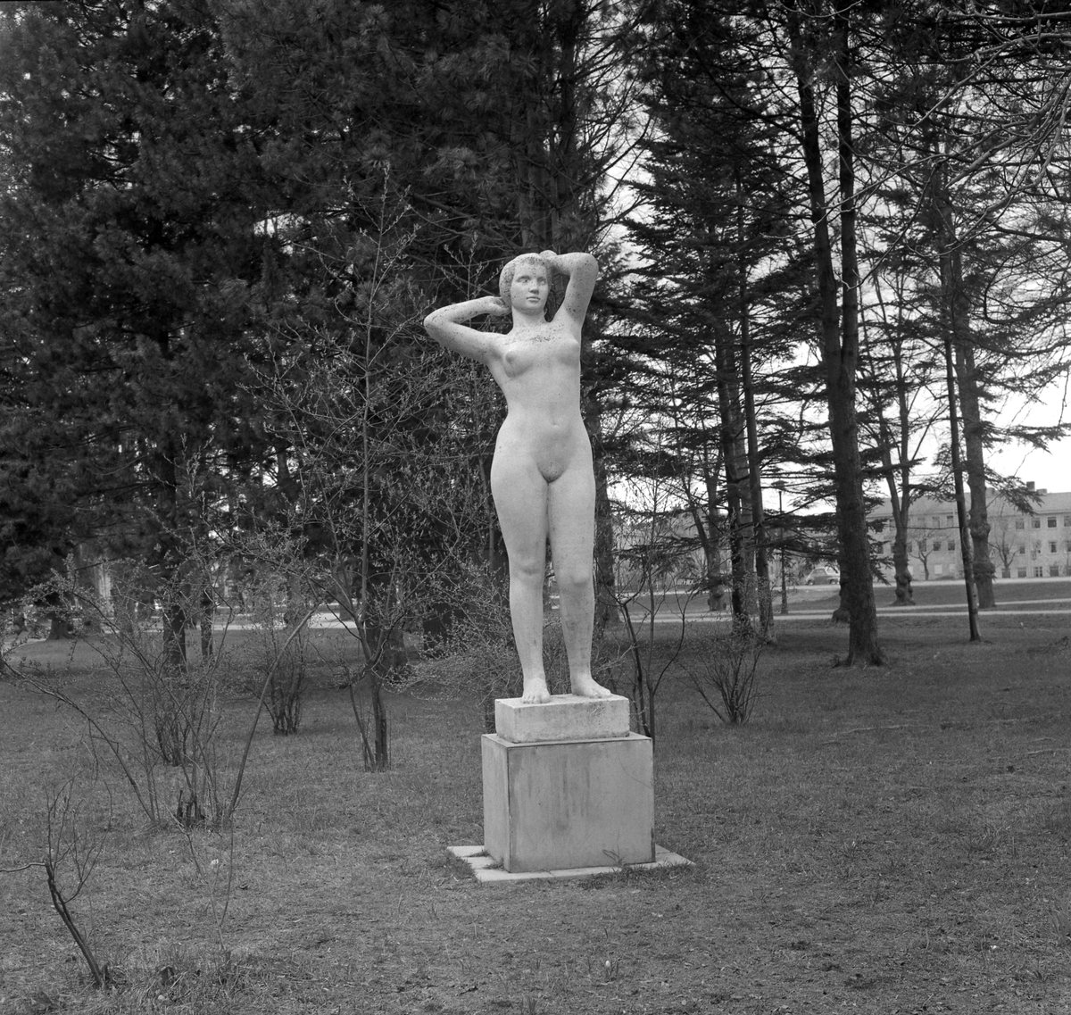 Statyn "Sommar" av Nils Sjögren. Stadsträdgården i Gävle. Den 18 maj 1965.