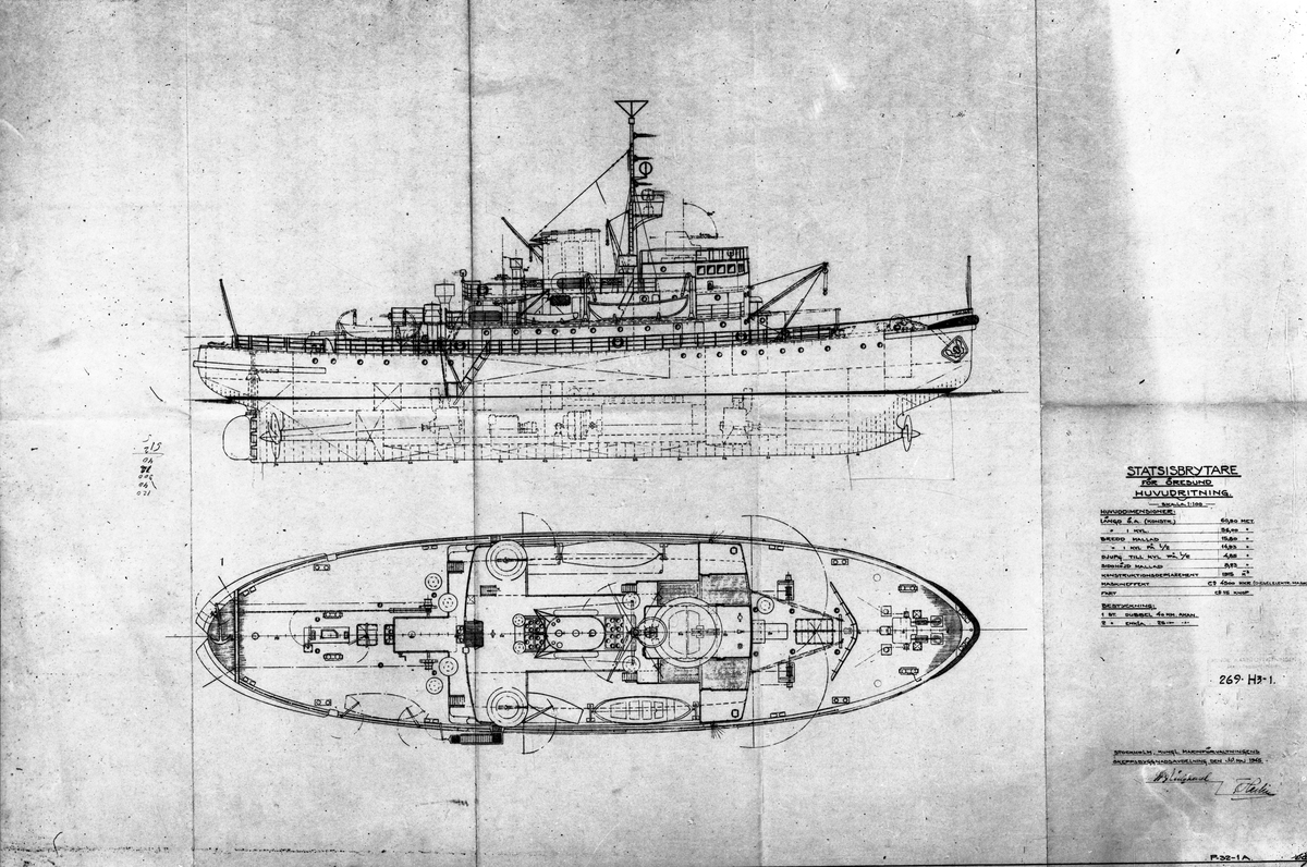 Ritning för stadsisbrytare för Öresund. Juli 1945. Gävle Varv.