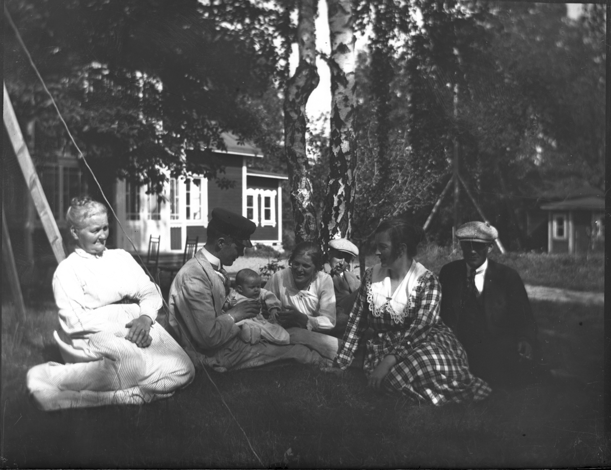 Den unga familjen Brundin med förstfödda Ingrid på besök hos en okänd familj.