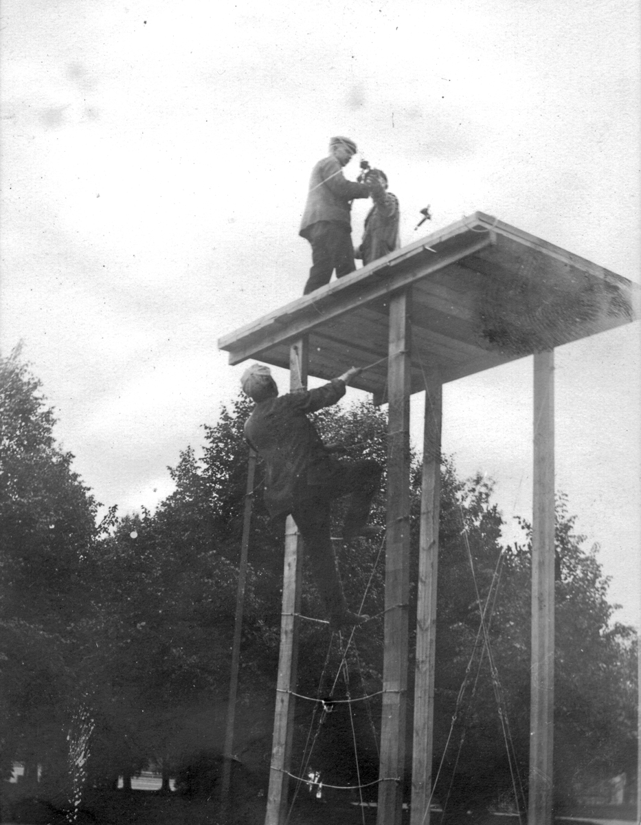 Installation av elledning för spårvagnstrafiken med hjälp av en tornvagn