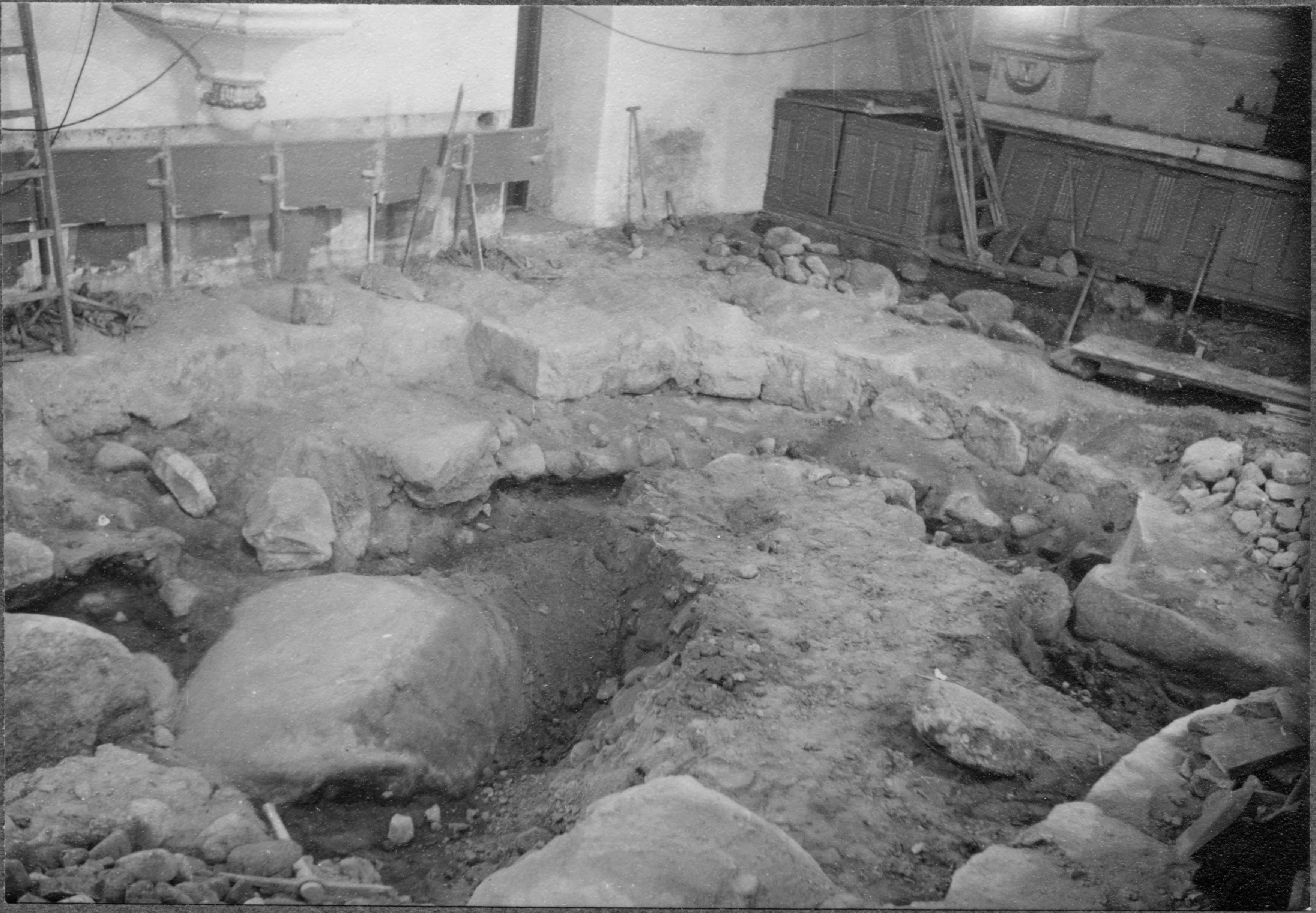 Utgrävning i kyrkan. Korgrund från sydväst.