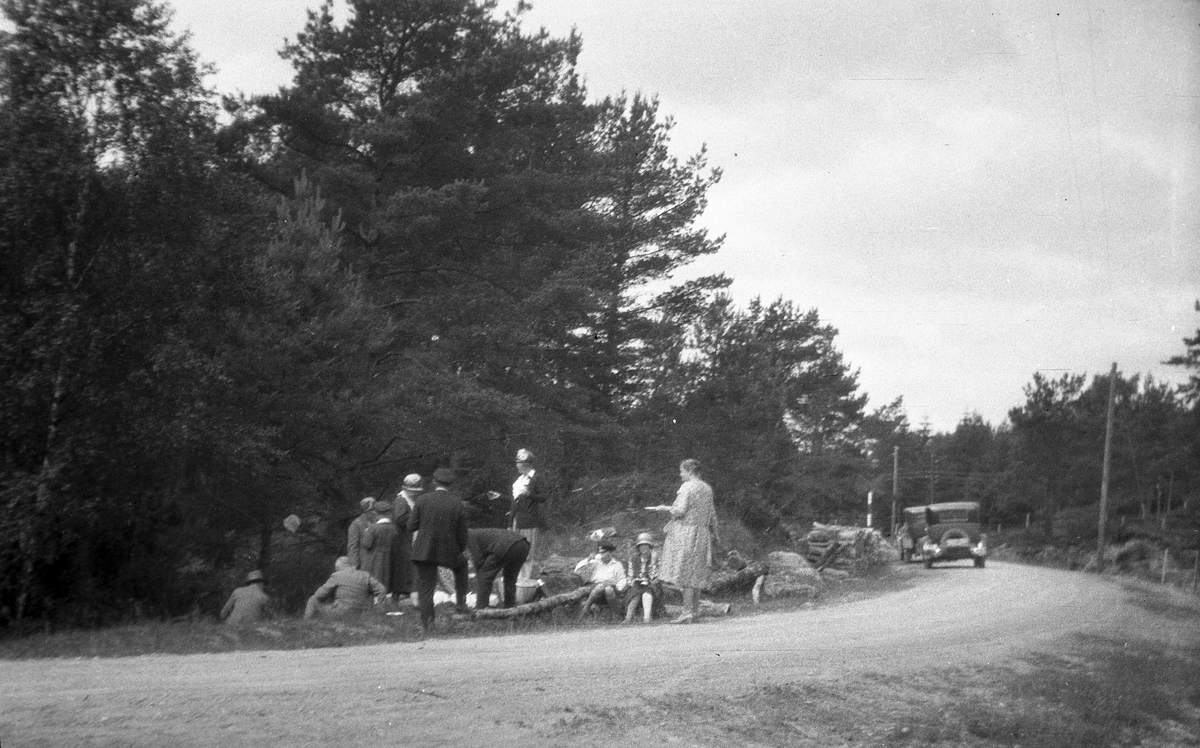Rast under en utflykt med bil. Bilden är från mitten av 1920-talet.