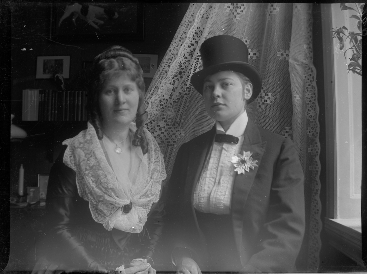 Här är det maskerad med Hanna Olsson till vänster och en väninna.