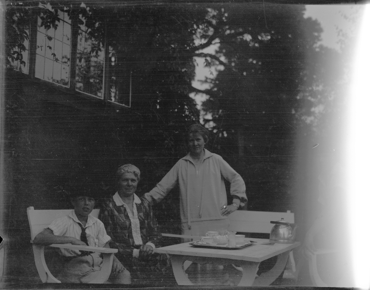 Hanna Olsson till höger, halvsystern Lisa och en brorson, Sten, till vänster. Brodern hette Simon Åkerlöf och bodde i Djursholm. Bilden torde vara från 1921-22.