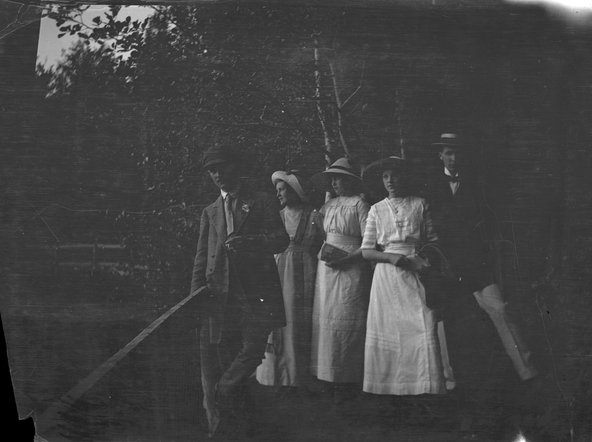 David Brundin längst till vänster, därbakom Anna Larsson från Hemlinggrind och två av Elnas systrar med uppvaktande kavaljer.