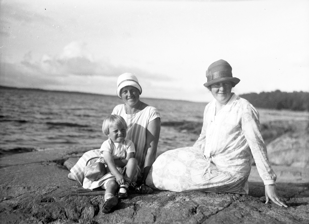 Hanna Olsson till höger tillsammans med förmodligen fiskarhustrun och hennes dotter i Harnäs.