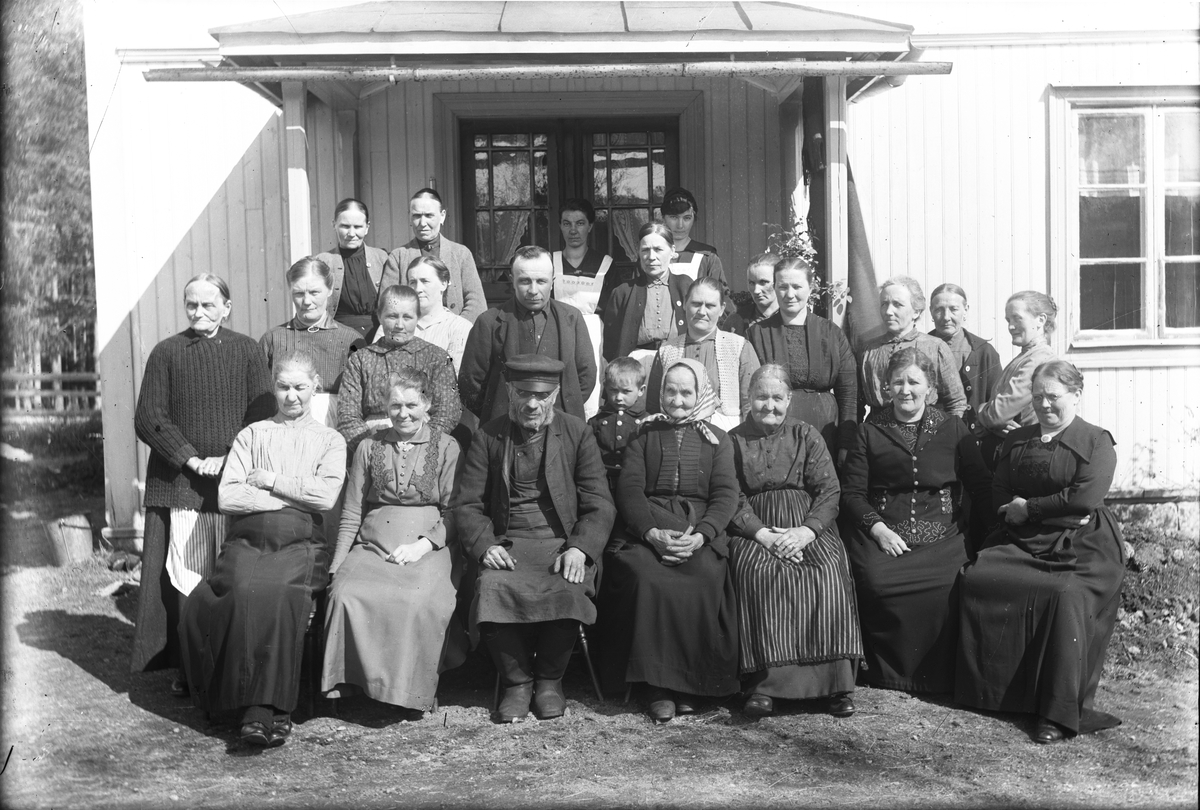 Wall nummer 10:12. Husmor Karin Andersdotter f. 22 april 1842 firade här sin 70-årsdag, sitter med sjalen om huvudet, maken Karl Karlsson f. 15 februari 1846 med mössan på, sonen Axel f. 8 maj 1882 står bakom fadern. Andra damen från vänster sittande "Briten" Lindqvist f. 19 juli 1869 från Åsmundshyttan nummer 6 "Mattsas". Damen längst till höger Margareta Andersson f. 24 augusti 1866 från Åsmundshyttan nummer 8 "Anders Ols", (mor till Enok Eriksson).