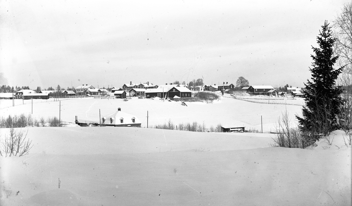 Bergs By med kraftstationen i förgrunden. 1700-talshuset till vänster är gamla Herrgården. Numera flyttad upp till konserthuset i Hofors.