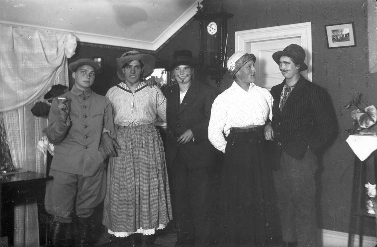 I randig kavaj Anna Eriksson, med svart slokhatt systern Lisa, båda döttrar till trädgårdsmästare Eriksson.