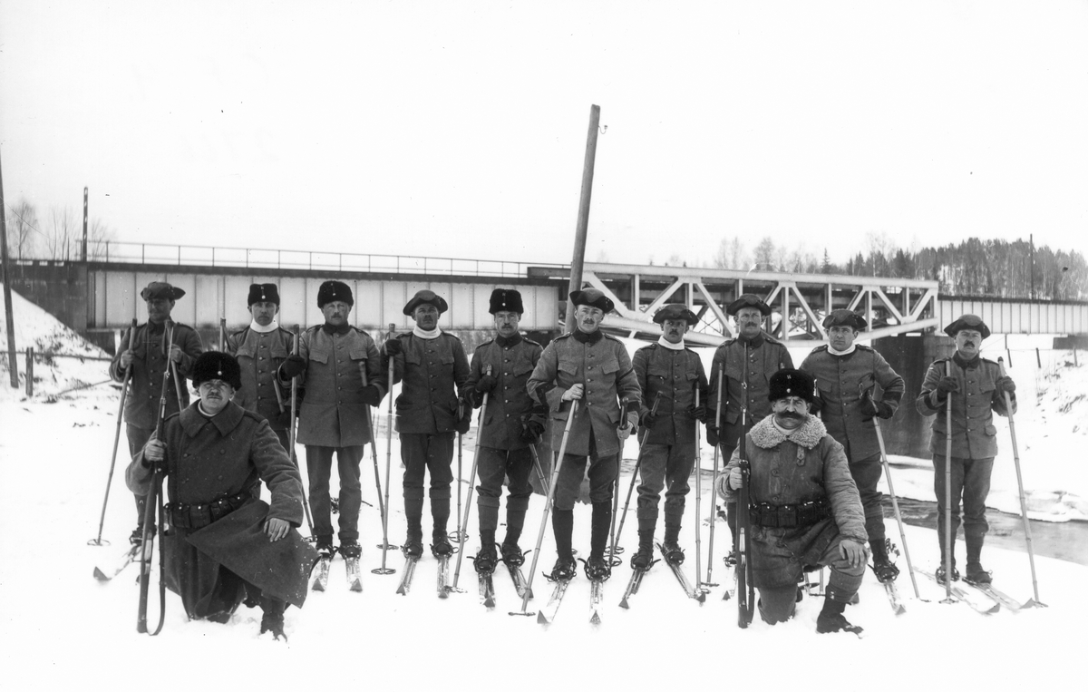 Okända militärer framför järnvägsbron i Lenninge.
