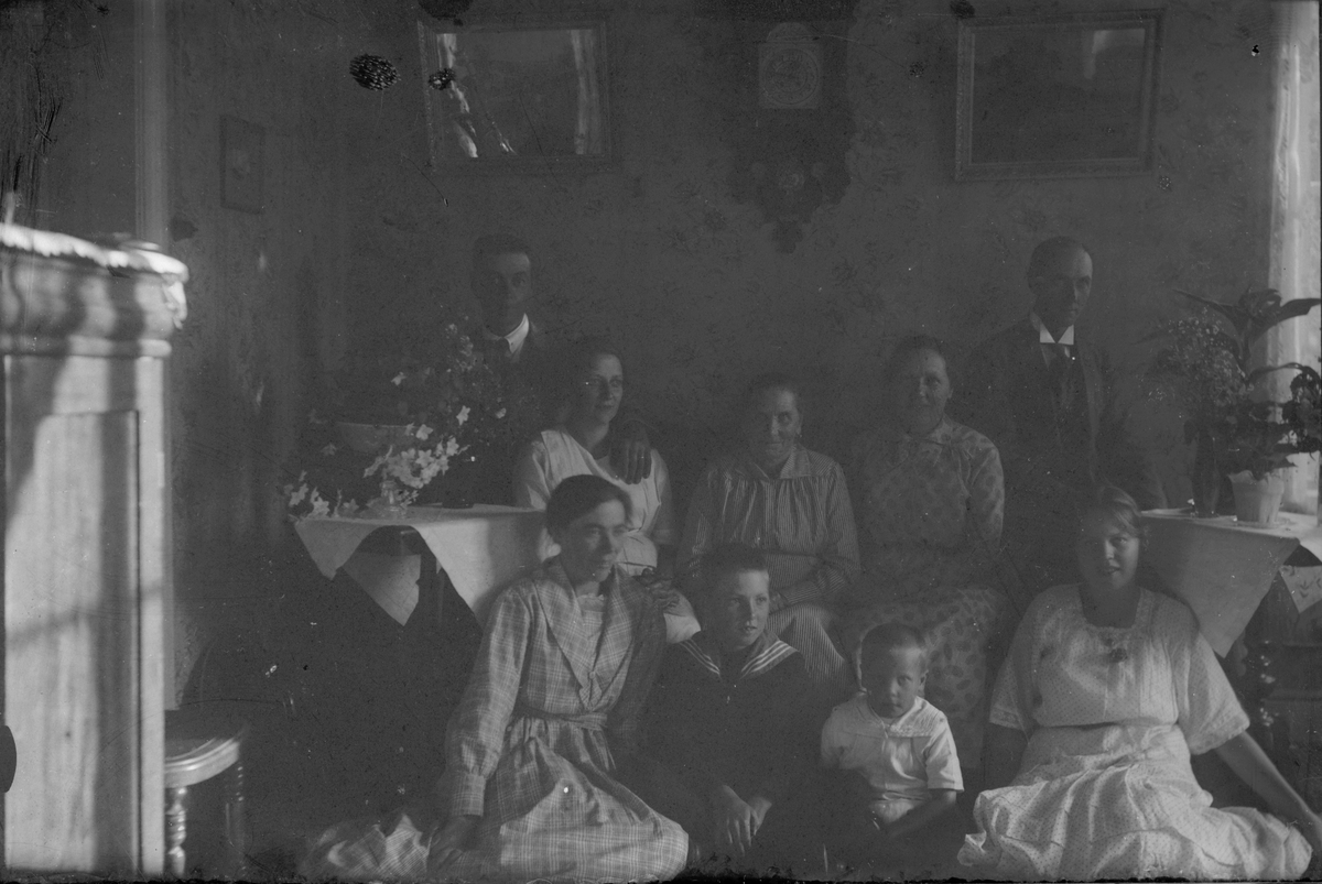 Familjegrupp i finrummet.