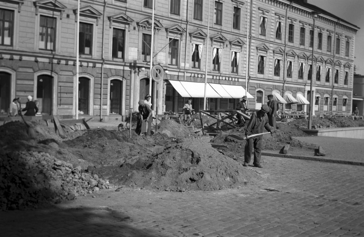 Gatuarbete på Drottninggatan. 1948. Reportage för Gefle Dagblad.