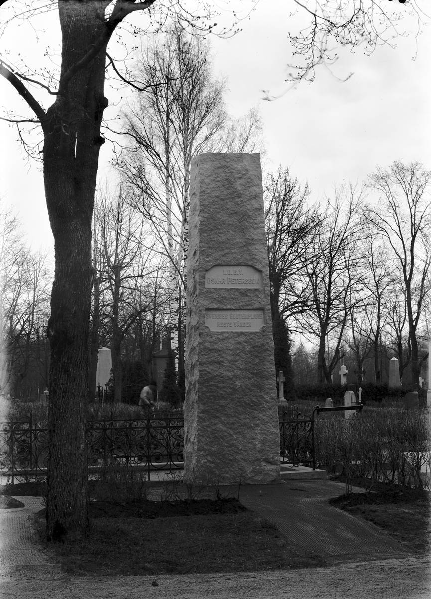 Oscar Peterssons grafvård. "Svenska Godtemplare reste Vården". År 1915
