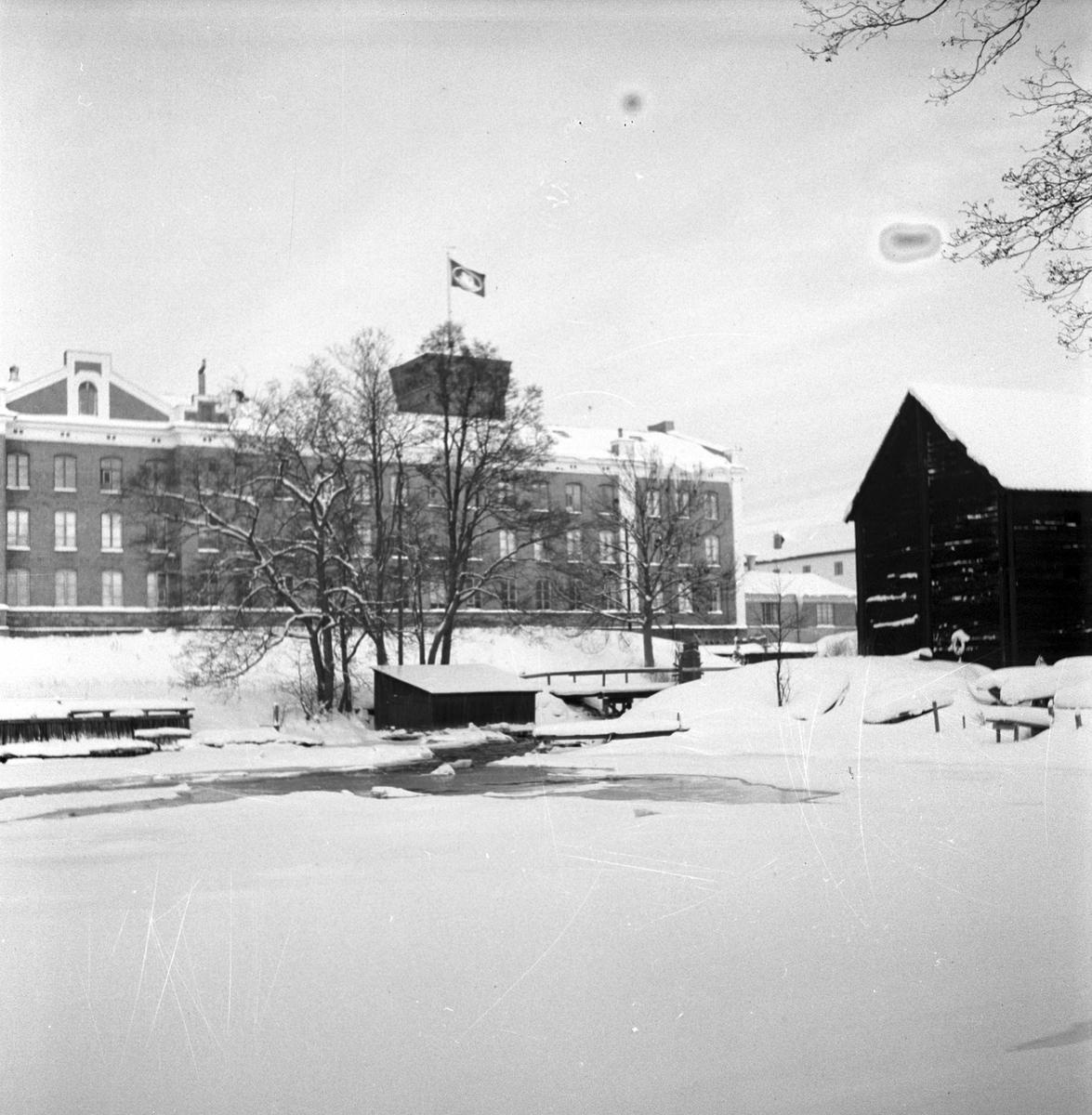 Gävle Manufaktur Svanen, Strömsbro i vinterskrud. 15 januari 1950.