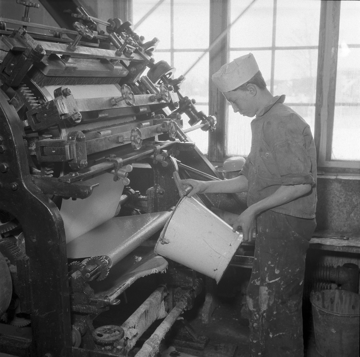 Häller färg i tapettillverkningsmaskinen