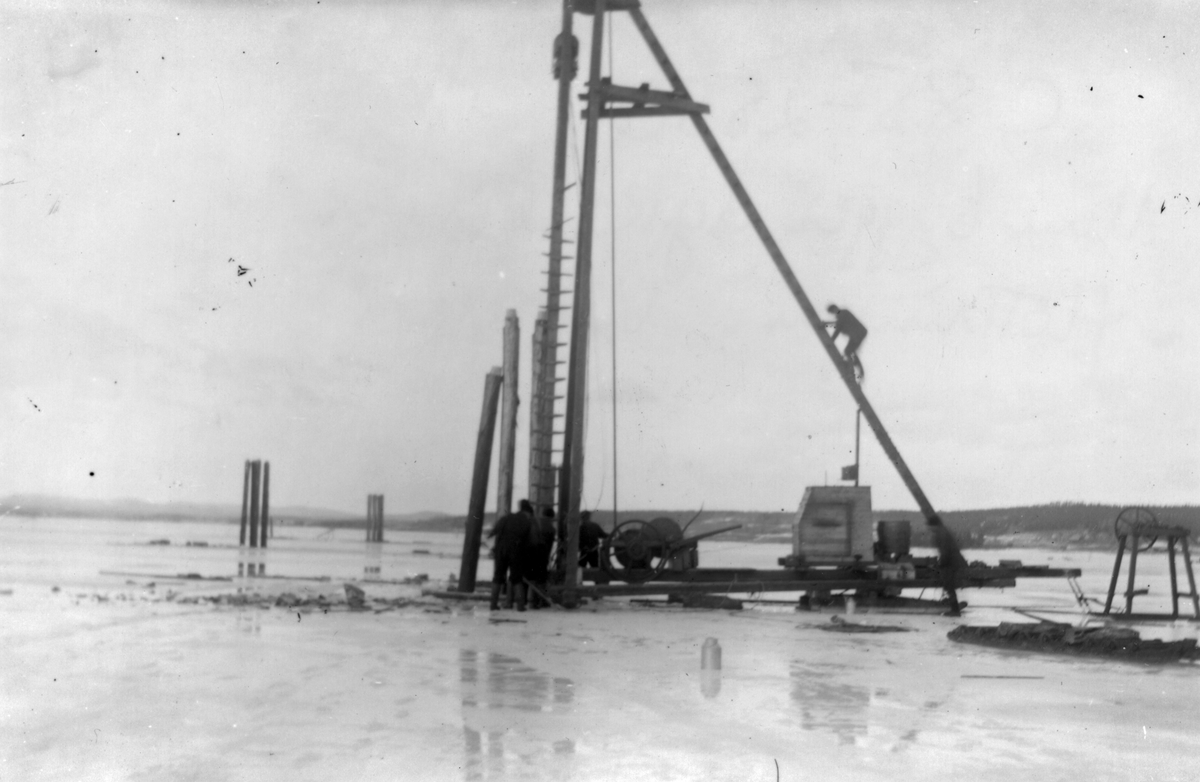 Byggande av dykdalber för flottningen i Varpen.