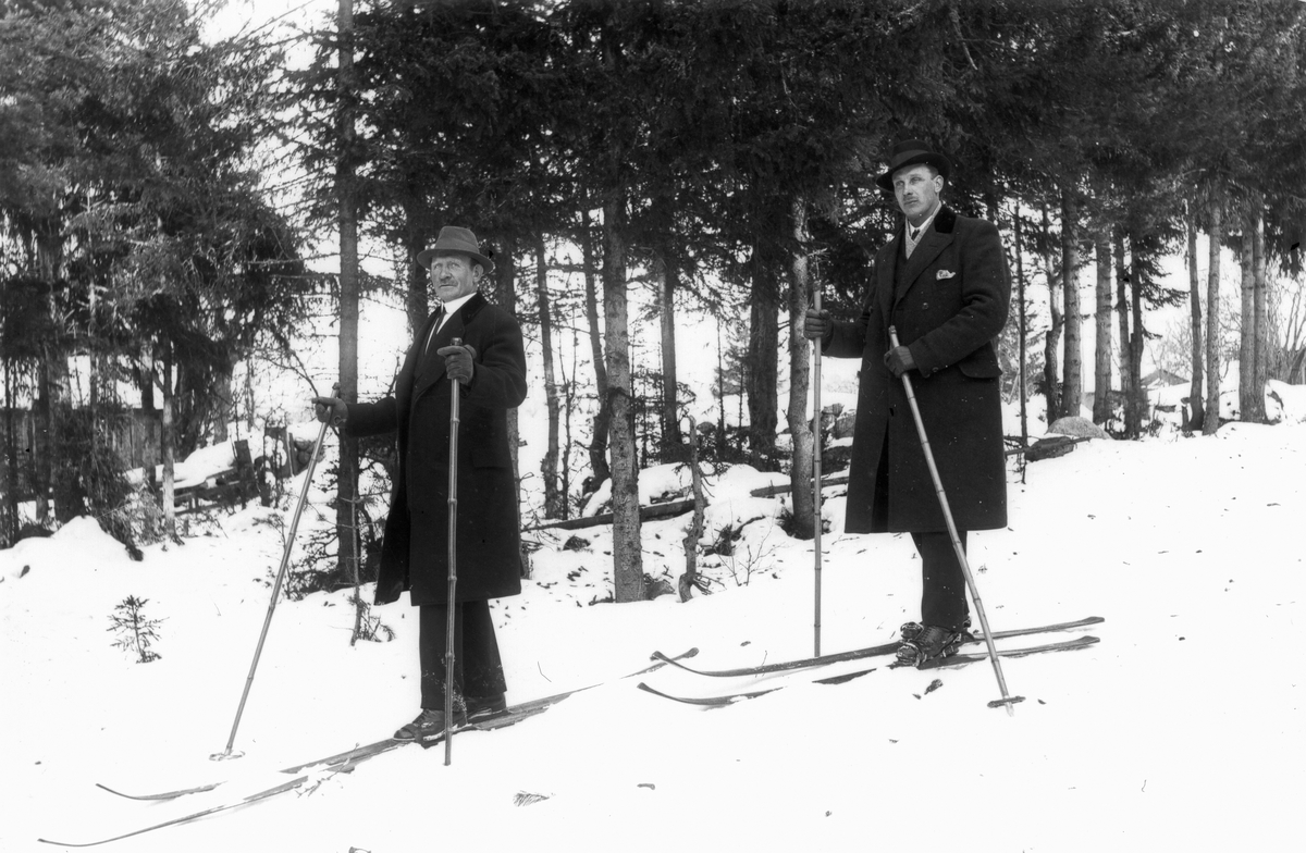 Från vänster Olle Styf och Tuna-Johansson (stenhuggare vid brobygget).