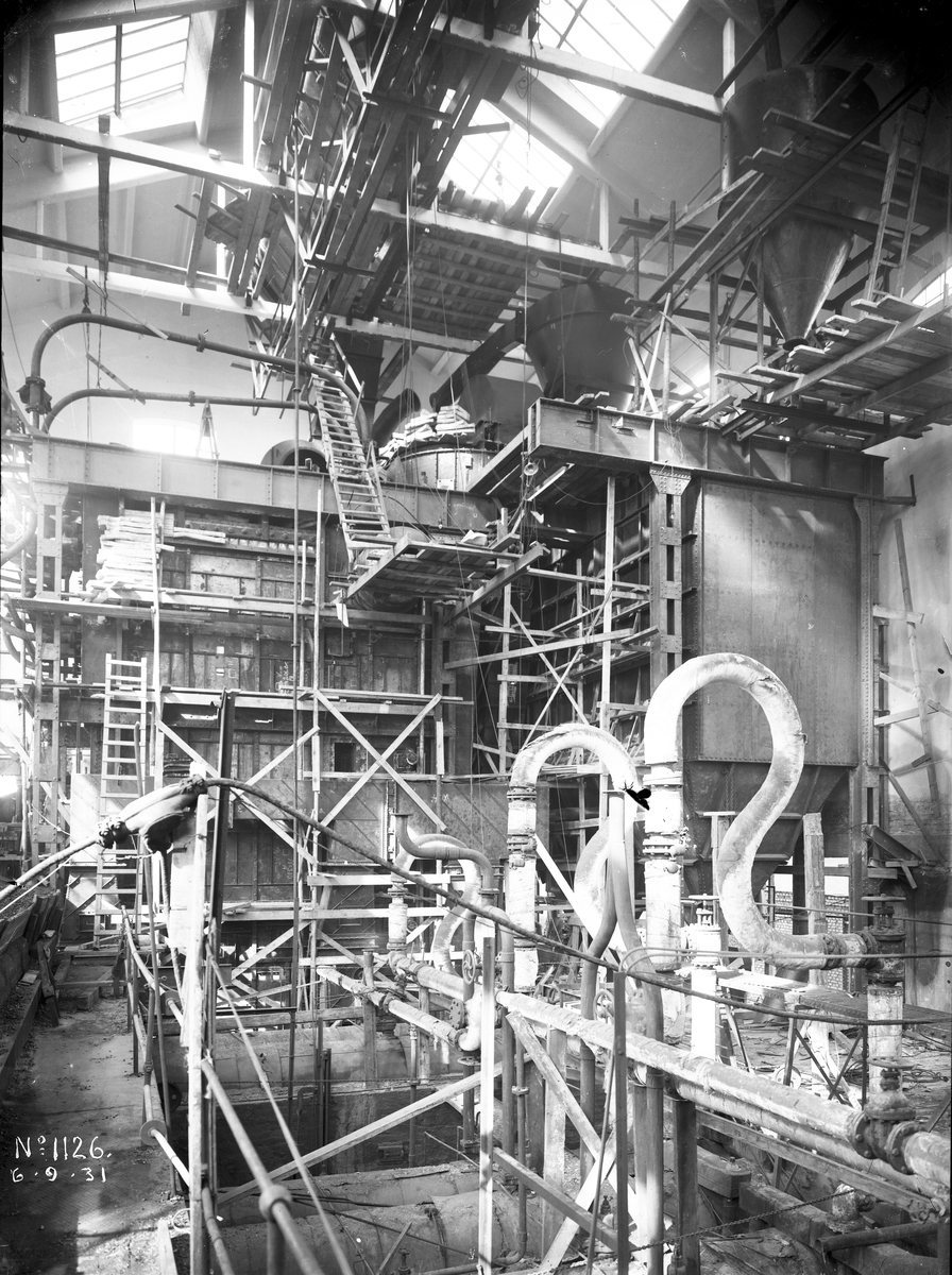 Interiör av pannhuset med gamla och nya pannor. Den 6 september 1931