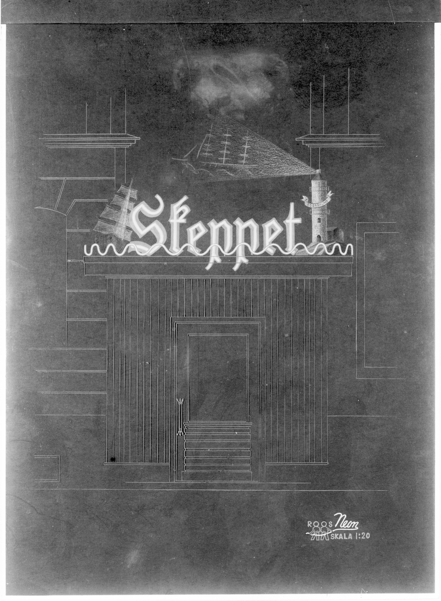 Grand Central Hotell, Gävle. Skiss på skylten till Skeppet. Den 14 november 1945