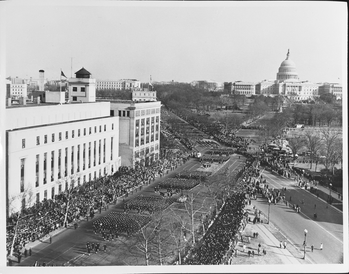 Repro. bild från Amerika, den 17 december 1957. I bakgrunden Vita Huset i Washington DC.