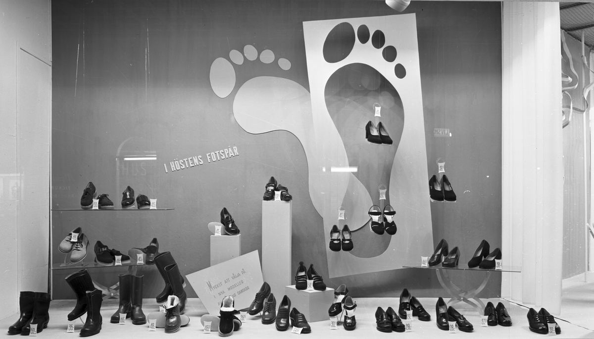 Konsum Alfa Varuhuset. Skyltfönstertema "Skofönster". Den 25 september 1949
