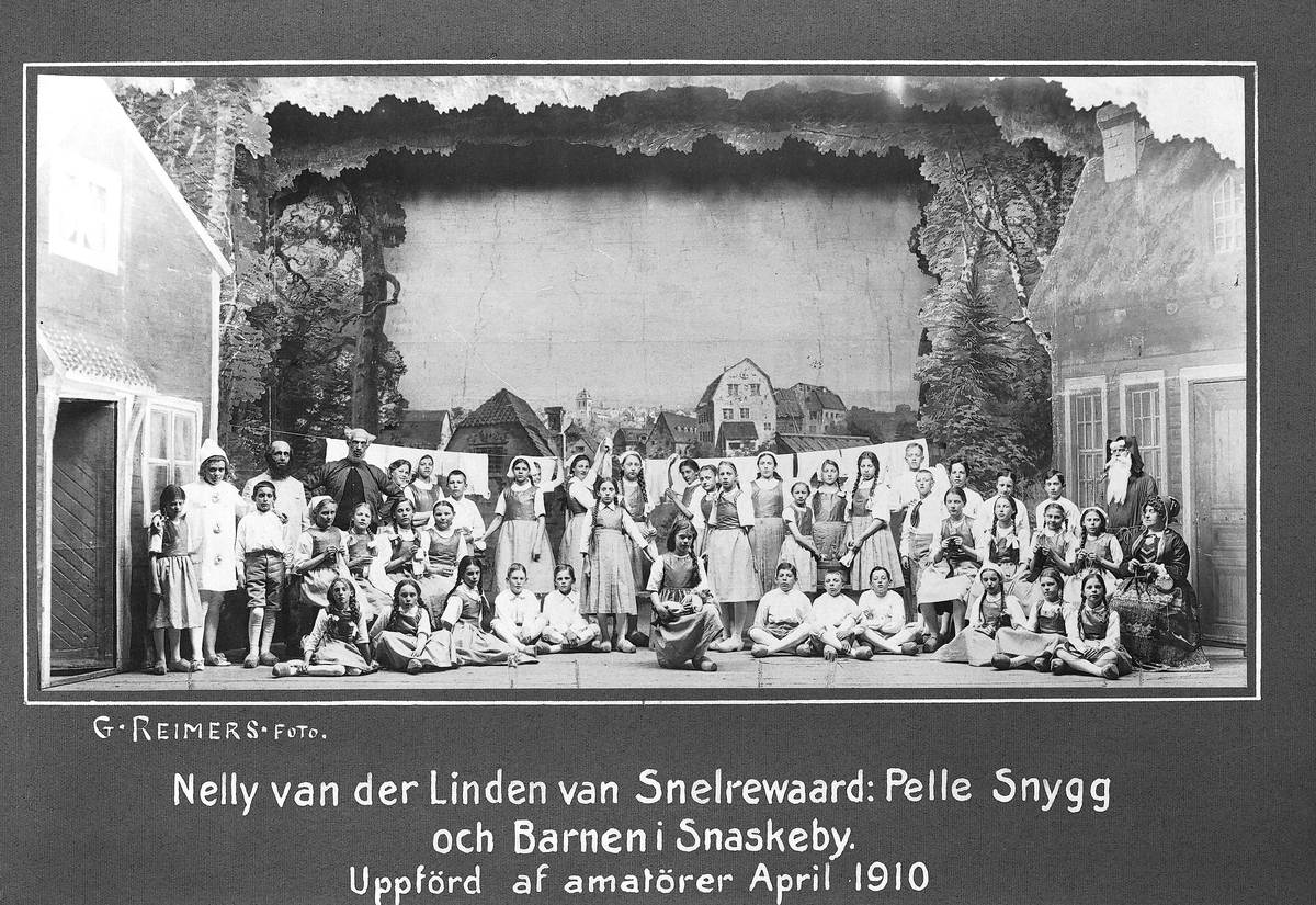 Nelly van der Linden van Snelrewaard: Pelle Snygg och Barnen i Snaskeby. Uppförd af amatörer April 1910. Barnsångspel i fyra akter, översatt från holländskan