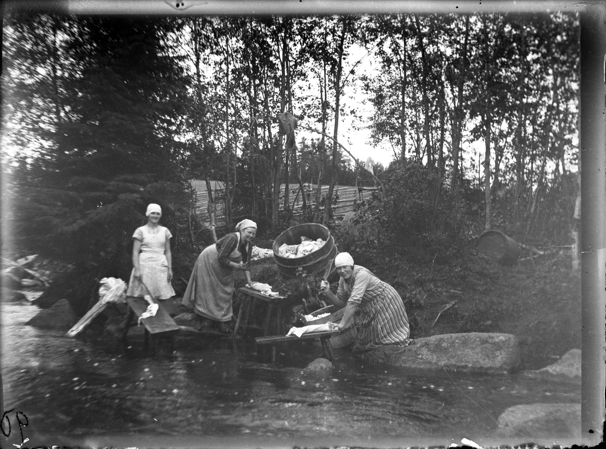 Byk på gång. Enligt boken Annefors historia av Kjell Söderlund s.127 så står det att personerna på bilden är "okänd Lillpiga" samt Anna Brosten och Elin Johansson vid Brostens.