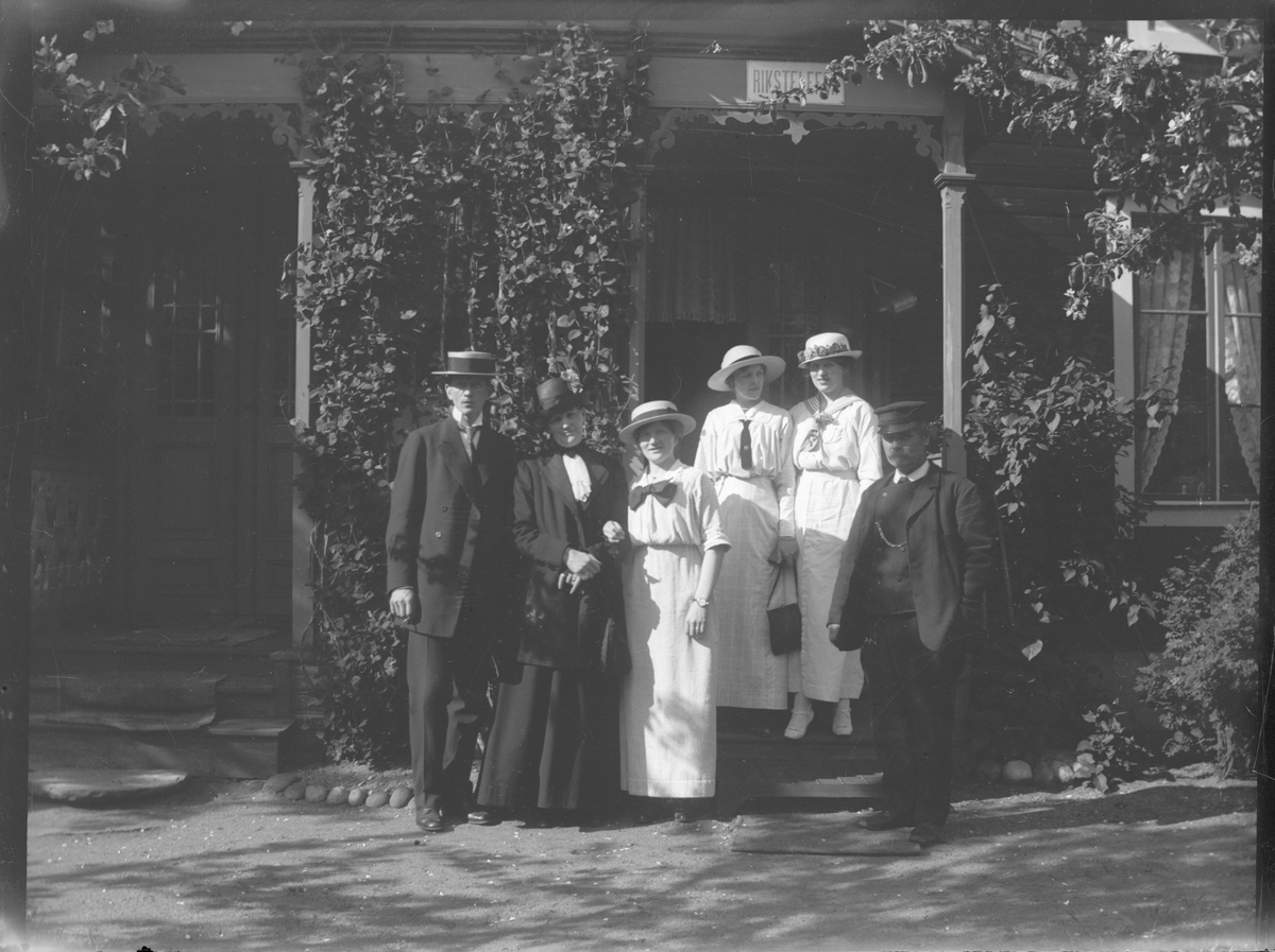 Miljön okänd, men personerna från väster är Einar Olsson, Anna Larsdotter Olsson, Gertrud, Ingeborg och Naemi Olsson. Mannen till höger okänd.
