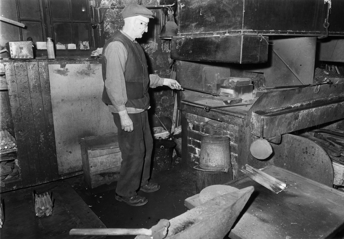 Ånghammarsmed Hjalmar Karlsson, fotograferad i smedjan den 3 december 1953.