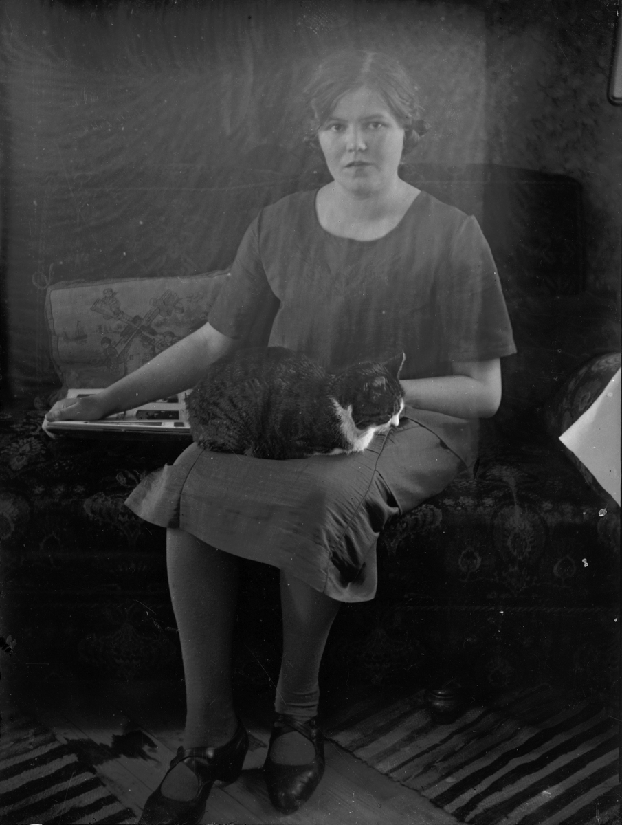 Ung kvinna med katt.