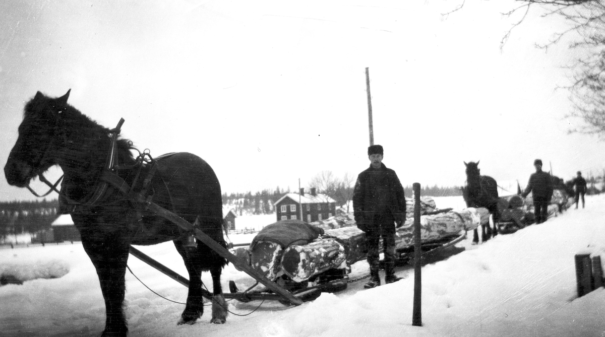 Titel: Timmerlass genom Axmarby med hästar