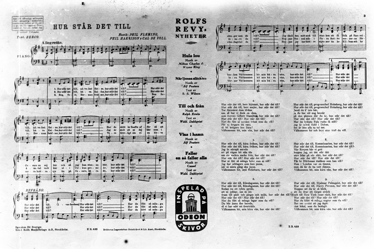"Hur står det till". Text: Berco. Musik: Phil Fleming, Phil Harrison och Cal de Voll.