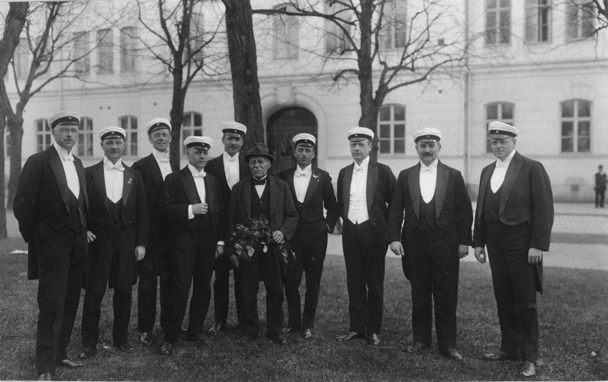 Utanför läroverket, Birger Enlund nr 5 från vänster. Fotograf Reimers, Gävle.