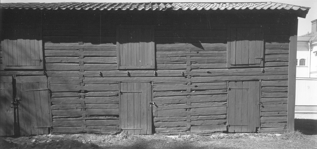 Timmerbyggnad (lada) utanför Länsmuseet Gävleborg, Rettigsgatan.