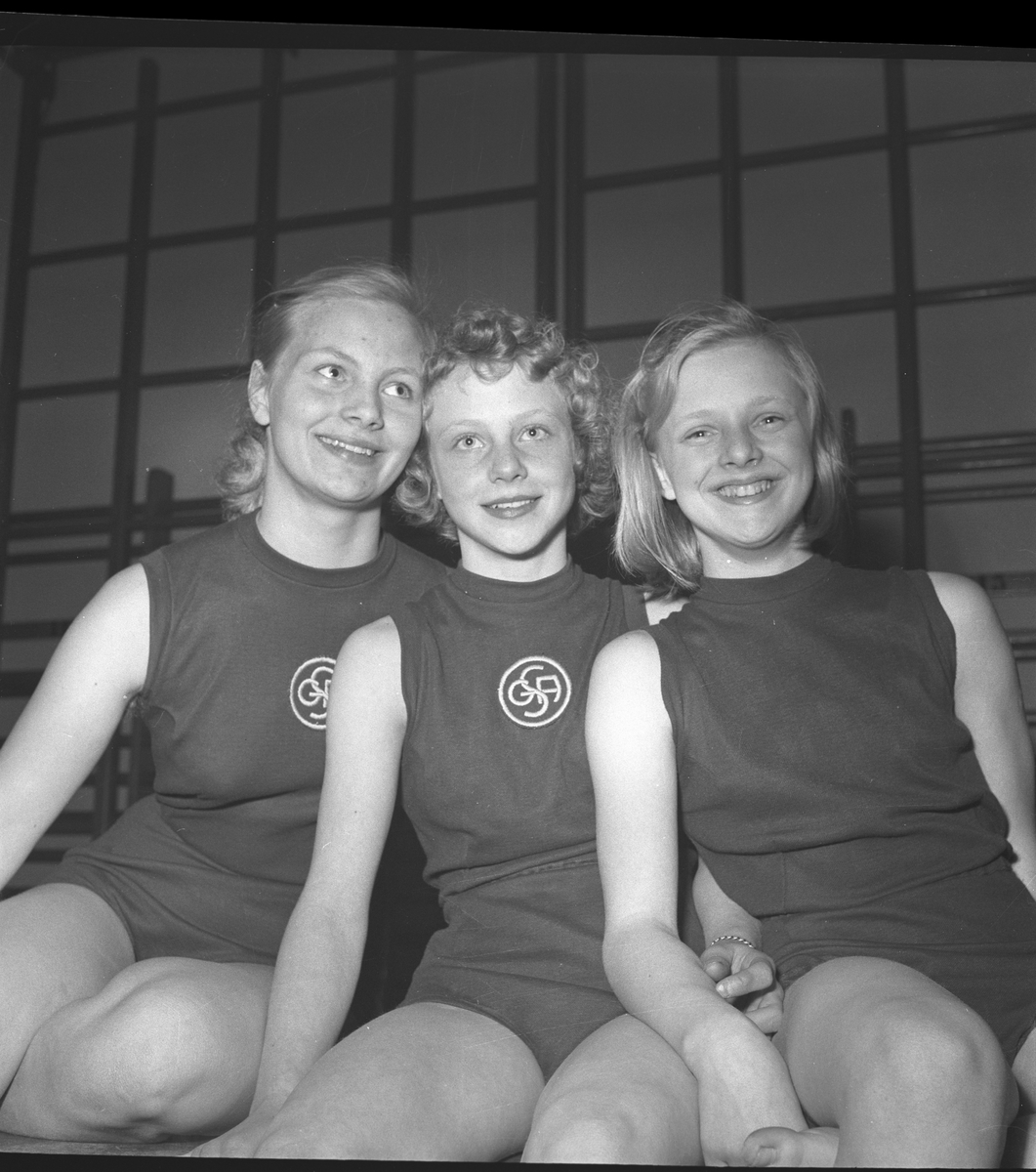 Gymnastik junior DM. Flickorna är medlem i Gefle Gymnastikförening. Fröken Törnwall.