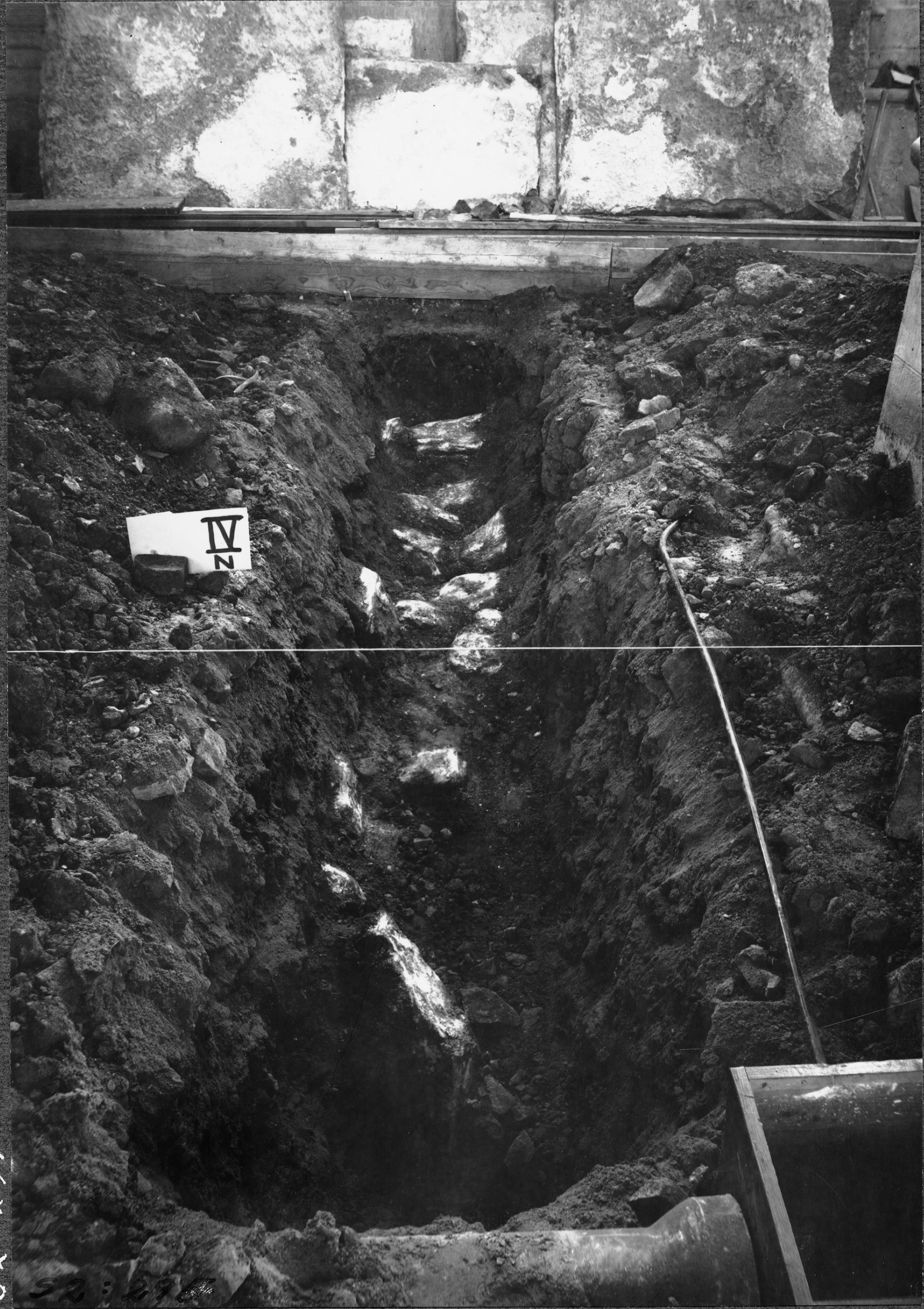 Grävning inom kyrkan, schakt IV, sett från norr.
