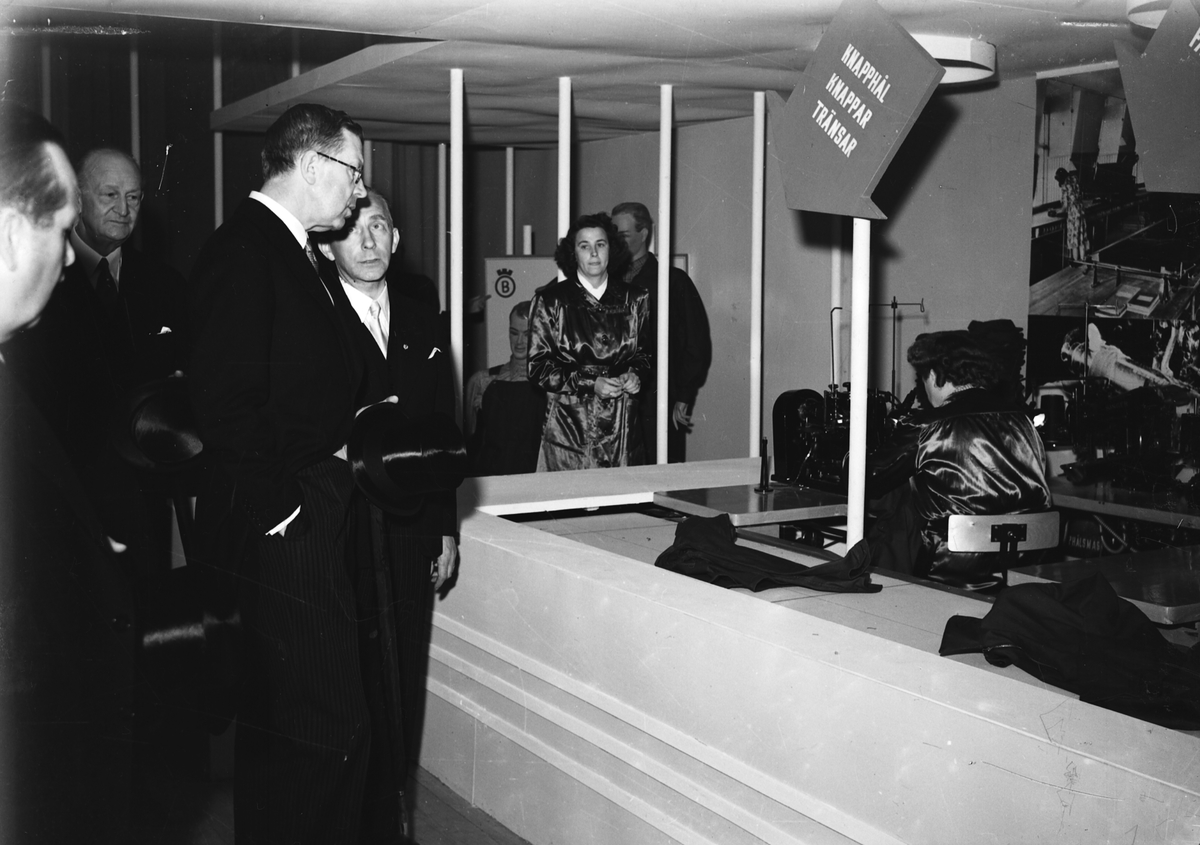Kungabesök vid Bellander Björnkläder vid Gävleutställningen 1946 på Travbanan och Folkparken med anledning av Gävle stads 500- årsjubileum
