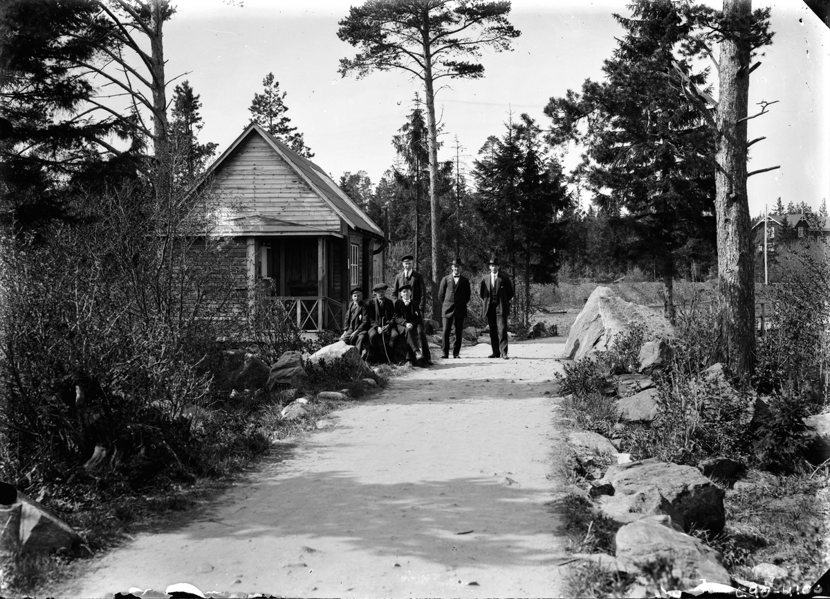 Grupp av män och pojkar på väg.