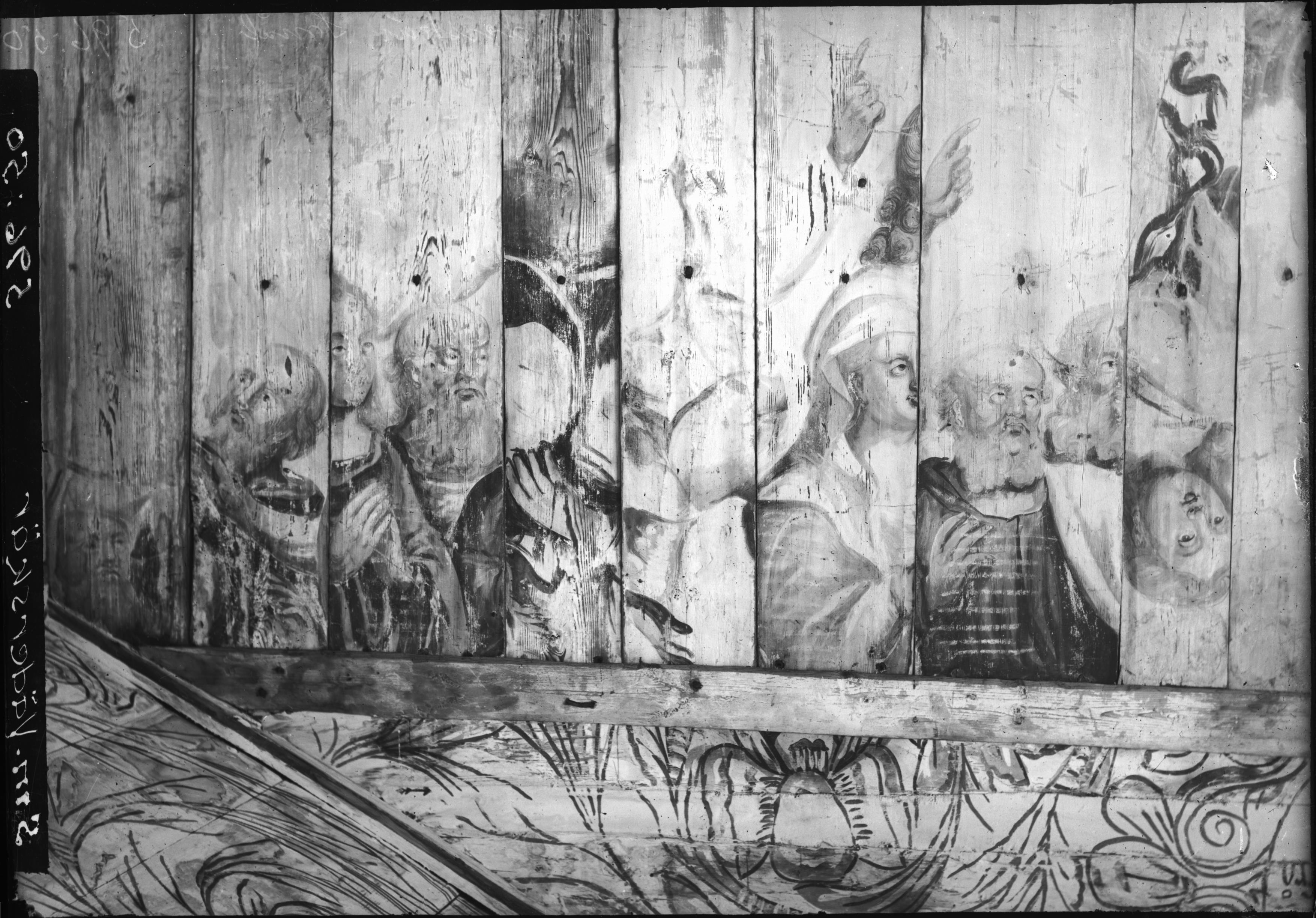 Beskrivning: Målningar på vägg. Före restaurering 1924.