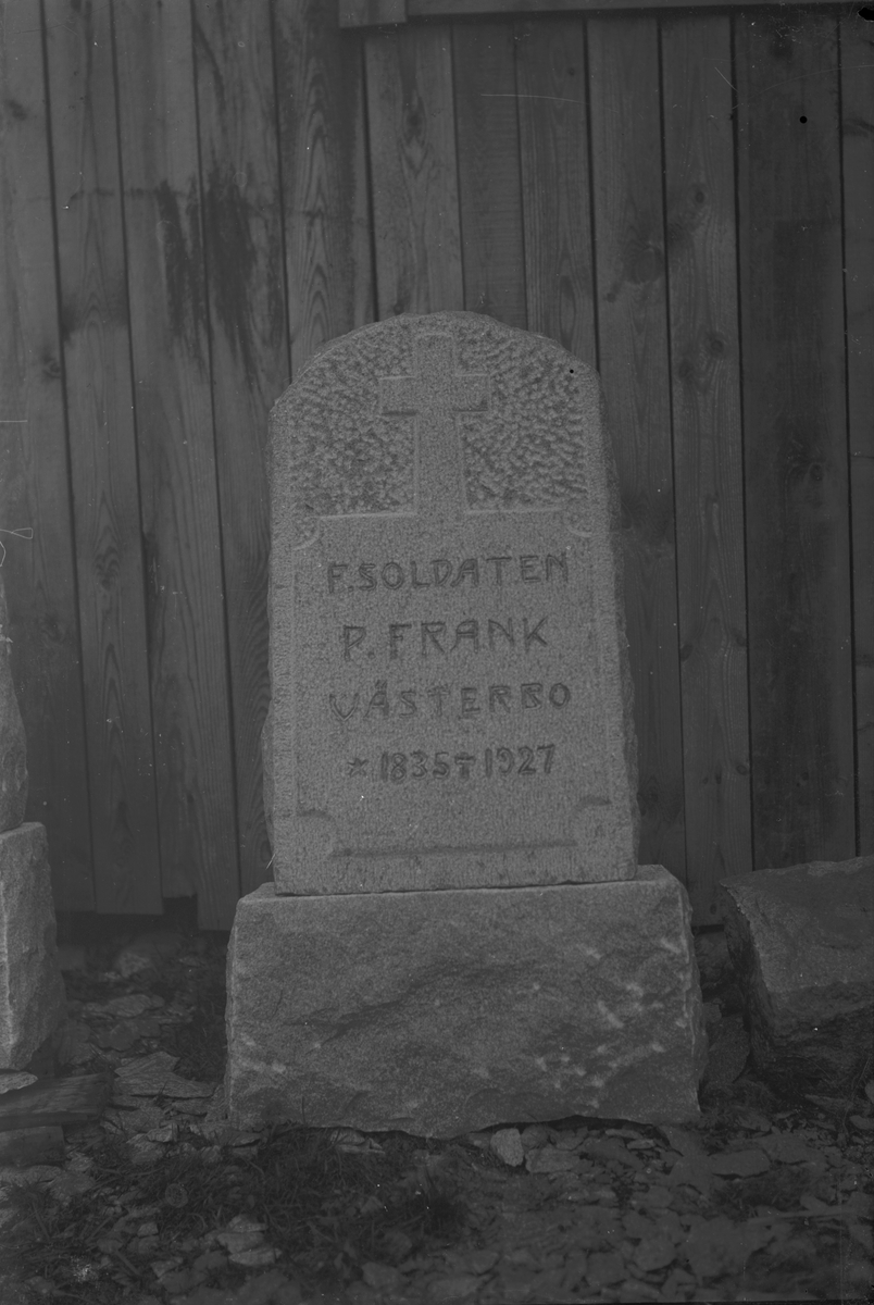 Gravsten med text "F. SOLDATEN P. FRANK VÄSTERBO *1837 +1927".
