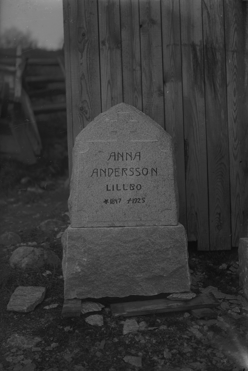 Gravsten med text " ANNA ANDERSSSON LILLBO *1847 +1925".