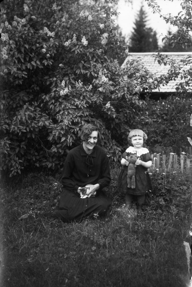 I sommargrönskan, Edit Larsson-Lang, Västerbo, senare Säbyggeby. Flickan med nallen är Iris Brodin, Västerbo.
